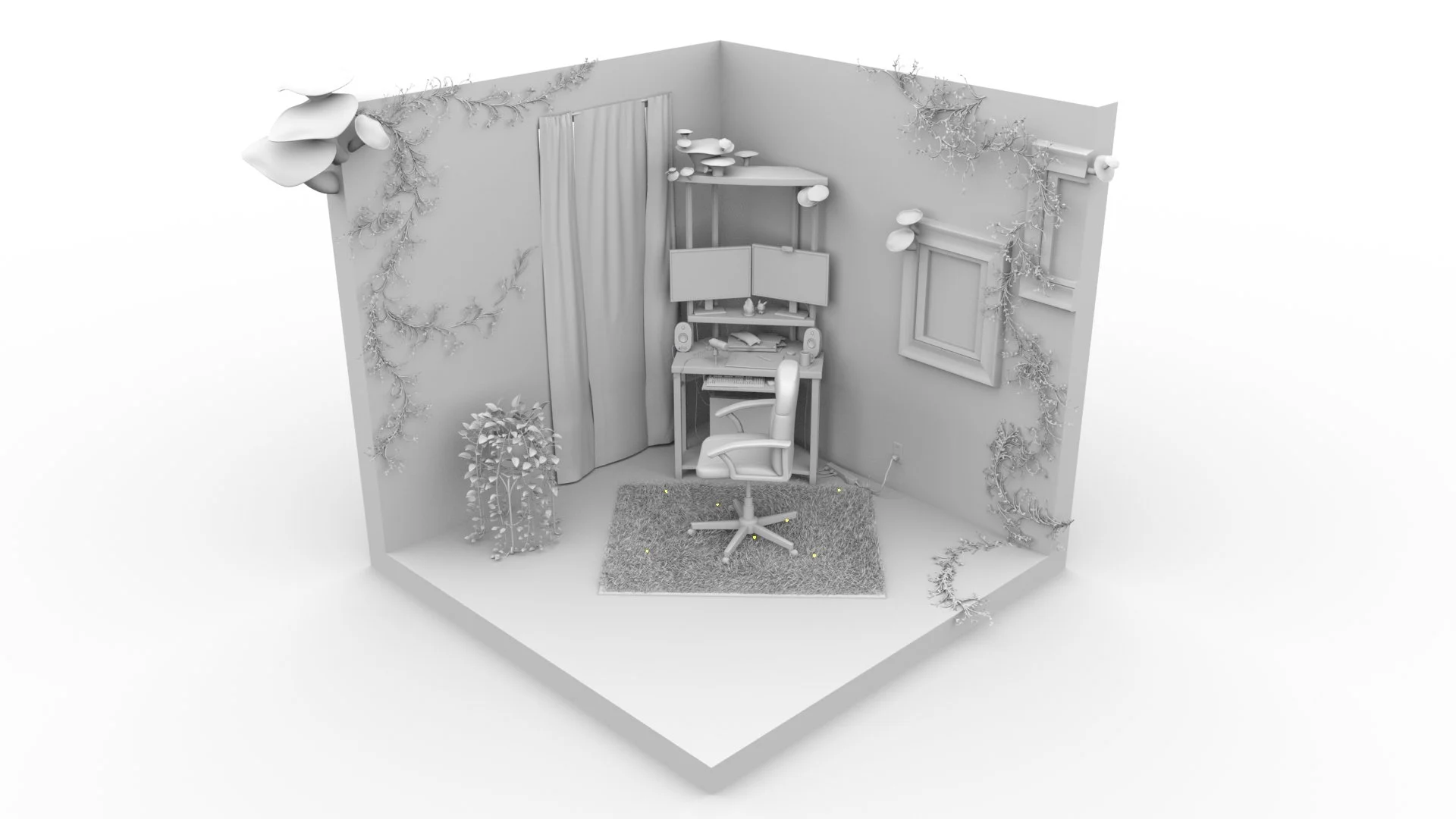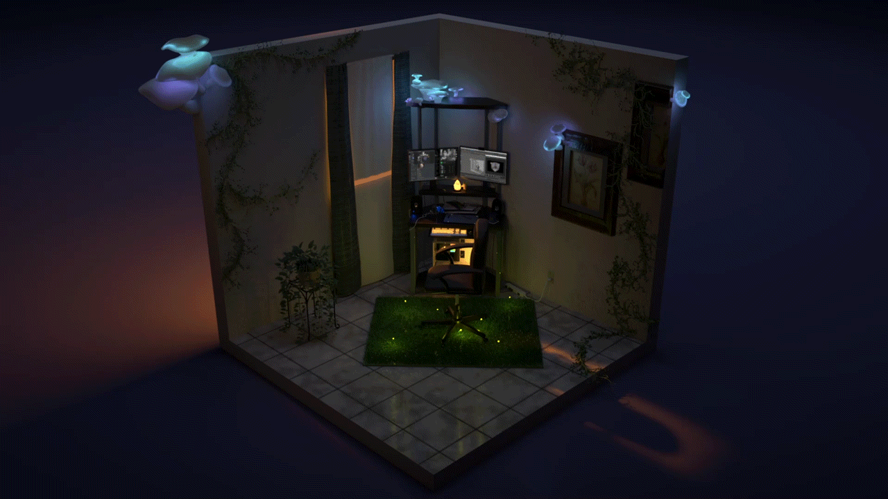Created in the Spring of 2021, this piece was inspired by the infamous corner of my living room, which I was constantly working at. I concentrated on replicating each small detail while also creating a whimsical vibe. This piece was submitted to SVA’s Computer Art Rendering New Realities sister exhibition (link) which focused on environment design and altered realities.